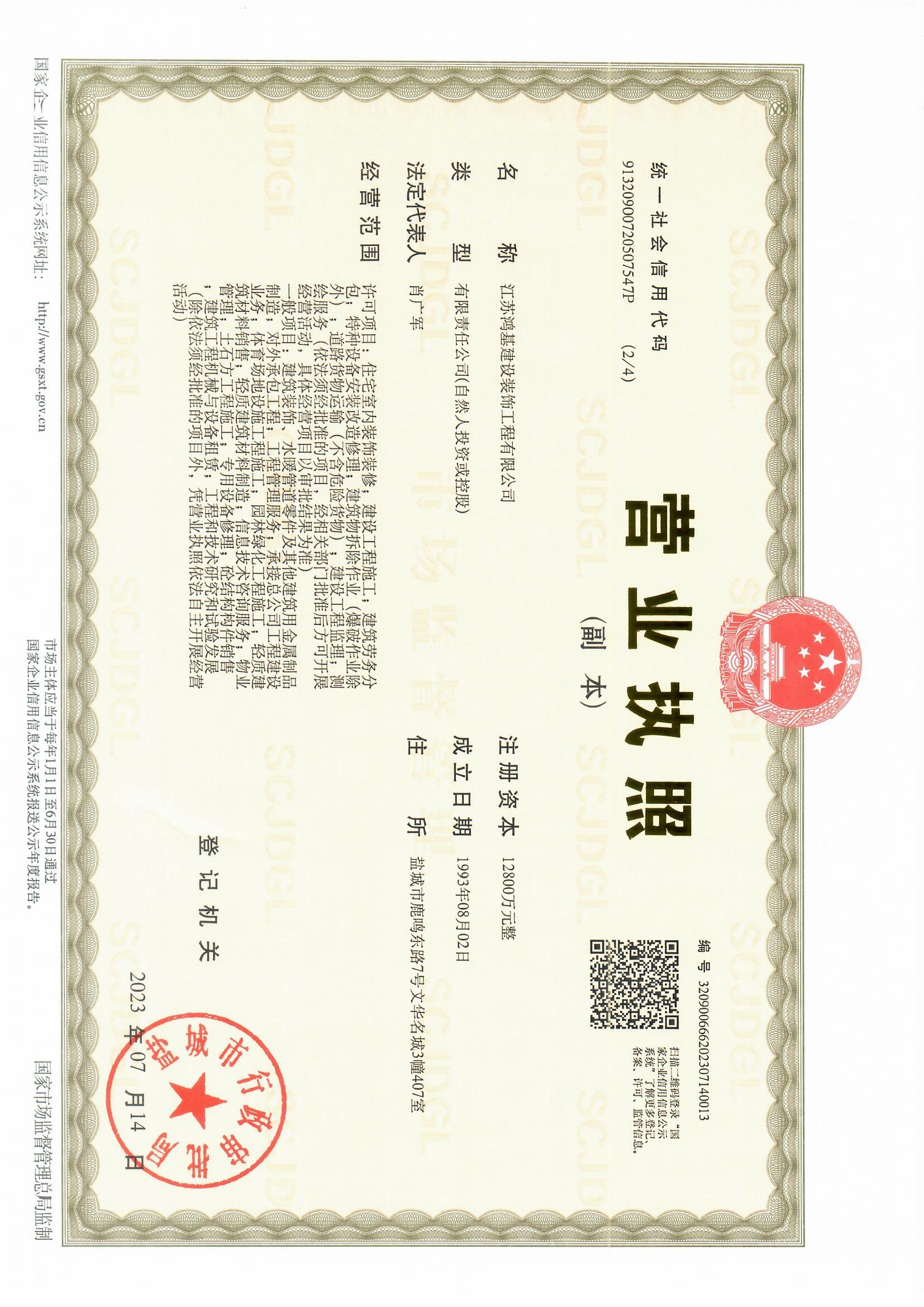 盐城市鸿基建筑工程有限公司前身为盐城市鸿基建筑工程公司,创建于1993年8月,是由盐城市政府地产办公室主办、经市计经委批准成立的全民所有制国有企业,隶属于市政府地产办公室“领导与管理”。1999年,为积极响应市委市政府号召进行体制改革,经市体改委批准,公司成为全市建筑行业第一家参加改制的企业,公司更名为“盐城市鸿基建筑工程有限公司”。历经三十余载的蓬勃发展,公司组织管理结构不断优化变更,下设综合部、安全部、质量管理部、风控部、商务部、采购部、工程部、财务部、档案部,在董事长肖广军的带领下不忘初心、牢记使命,以诚信求发展,以质量拓市场,以安全求效益,群策群力,公司现已发展为集建筑施工总承包、装饰装潢及置业投资为一体的施工企业,在深耕本土市场的同时,紧跟市场脉搏,积极主动适应市场经济,集聚强大的资产规模优势与生产、施工能力,业务范围扩展至国内外多领域。